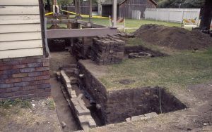 Archeological excavation- beneath rear porch, south Lincoln Home NHS- Sprigg House HS-11, foundation and fence, Roll #4 exp 4 Sprigg House, foundation Archeological excavation- beneath rear porch, south Lincoln Home NHS- Sprigg House HS-11, foundation and fence, Roll #4 exp 4 Sprigg House, foundation