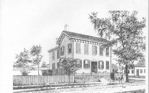 Drawing made from photograph . Part of a series of Springfield views (Only photos of pre-1900 Arnold House exist in background of Lincoln Home photos) LIHO NHS- Arnold House, #9 Arnold House, Lincoln Home