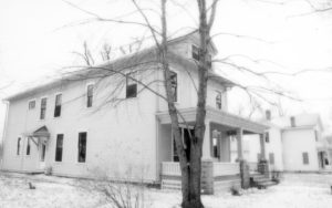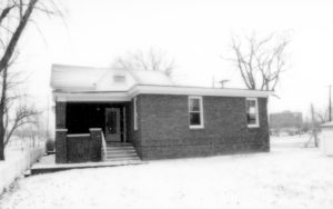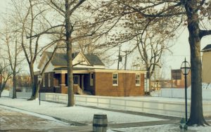 View of relocated Arnold House. appears to show an off-set on west side. (Only photos of pre-1900 Arnold House exist in background of Lincoln Home photos) LIHO NHS- Arnold House, #11 Arnold House, Lincoln Home