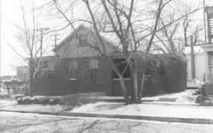 Winter view. Shows much of Arnold cottage, addition and shed. (Only photos of pre-1900 Arnold House exist in background of Lincoln Home photos) LIHO NHS- Arnold House, #5 Arnold House, Lincoln Home