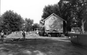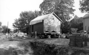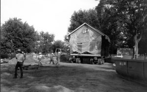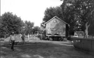 Archaeology exhibit LIHO NHS- Arnold House Relocation, Roll 14 black and white, exp 19 Arnold House, relocation, move Archaeology exhibit LIHO NHS- Arnold House Relocation, Roll 14 black and white, exp 19 Arnold House, relocation, move