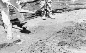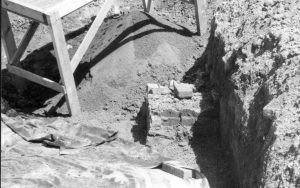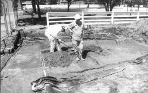 Fever River excavating features looking for 1860s era barn. Photos taken facing North Lincoln Home NHS- Corneau House Restoration, roll N12 exp 2 Corneau House, excavation