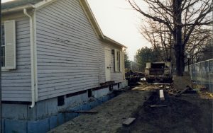 Floor/foundation of West room (addition). West wall of house visible Lincoln Home NHS- Corneau House Restoration, roll N12 exp 8 Corneau House, excavation