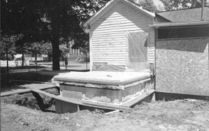 Floor/foundation of West room (addition). West wall of house visible Lincoln Home NHS- Corneau House Restoration, roll N12 exp 9 Corneau House, excavation