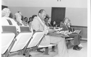 Supt. Gentry Davis preparing for a speech at Lincoln Library. Library auditorium. Lincoln Library is located across the street from the site staff, Lincoln Library
