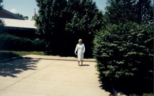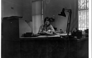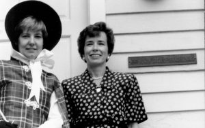 Jr. League members in front of their office at the Corneau House. One in period clothing. Looking East. Corneau House on Carrigan lot. volunteers, Jr. League, Corneau