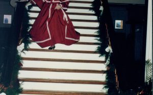 Lady in period dress descending stairs. Old State Capitol, Springfield, IL. Old State Capitol, Decorations Lady in period dress descending stairs. Old State Capitol, Springfield, IL. Old State Capitol, Decorations
