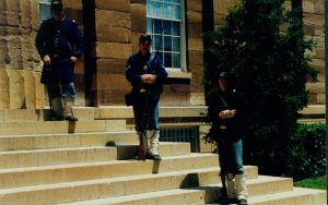 Civil War reenactors standing on steps outside Old State Capitol. Reenactors at Old State Capitol Old State Capitol, Decorations Civil War reenactors standing on steps outside Old State Capitol. Reenactors at Old State Capitol Old State Capitol, Decorations