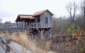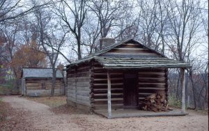 New Salem Cabin with fire wood piled up on porch. New Salem New Salem Cabin with fire wood piled up on porch. New Salem