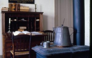 Office with srove, cloth covered table. Law Office Office with srove, cloth covered table. Law Office