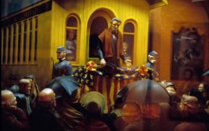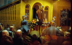 Diorama of man standing on back of train car. Great Western Depot, Train Station Diorama of man standing on back of train car. Great Western Depot, Train Station