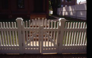 Photo taken from 8th St., looking at entry gate and E elevation of the structure 6 Beedle, Fences, Gate Photo taken from 8th St., looking at entry gate and E elevation of the structure 6 Beedle, Fences, Gate