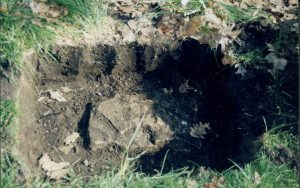 Uncovered pier/foundation while searching for 1880s barn; appears to be associated with later structure Lincoln Home NHS- Corneau House Restoration, roll N6 exp 17 Corneau House, restoration