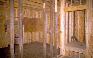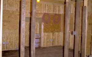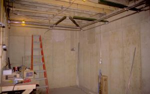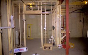Standing at bottom stairs, looking directly at East wall. Sensitive storage area ( the boom-boom room) under construction Lincoln Home NHS- Corneau House Restoration, roll N4 exp 30 Sprigg House, restoration