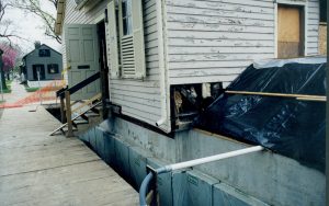 West wall and chimney under construction. Northwest corner of building in center of photo Lincoln Home NHS- Corneau House Restoration, roll N4 exp 25 Sprigg House, restoration