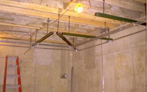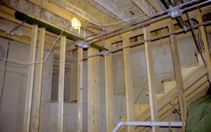 Looking at roof of basement while heating/electrical system being installed Lincoln Home NHS- Corneau House Restoration, roll N4 exp 34 Sprigg House, restoration