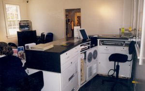 Setup behind Visitor Center desk Lincoln Home NHS- Visitor Center remodel, Roll 1999-15 exp 18 Visitor Center, Arnold, temporary Setup behind Visitor Center desk Lincoln Home NHS- Visitor Center remodel, Roll 1999-15 exp 18 Visitor Center, Arnold, temporary