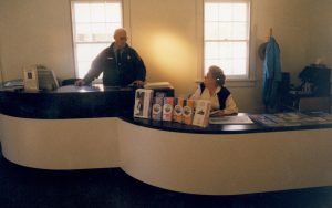 Temporary Visitor Center desk Lincoln Home NHS- Visitor Center remodel, Roll 1999-15 exp 20 Visitor Center, Arnold, temporary Temporary Visitor Center desk Lincoln Home NHS- Visitor Center remodel, Roll 1999-15 exp 20 Visitor Center, Arnold, temporary
