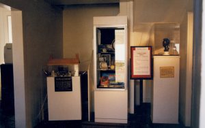 Front hall set up with cases, donation box and signs Lincoln Home NHS- Visitor Center remodel, Roll 1999-15 exp 21 Visitor Center, Arnold, temporary Front hall set up with cases, donation box and signs Lincoln Home NHS- Visitor Center remodel, Roll 1999-15 exp 21 Visitor Center, Arnold, temporary