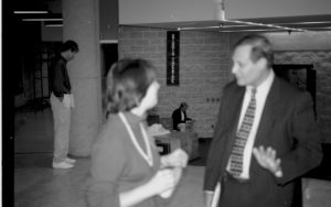 Lady and man talking. Lincoln Colloquium; UIS Roll#2, 4of4 Lincoln, Colloquium Lady and man talking. Lincoln Colloquium; UIS Roll#2, 4of4 Lincoln, Colloquium