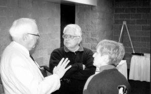 Three men, one with arms folded, talking. Lincoln Colloquium; UIS Roll#2, 1of4 Lincoln, Colloquium Three men, one with arms folded, talking. Lincoln Colloquium; UIS Roll#2, 1of4 Lincoln, Colloquium