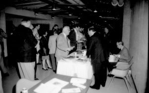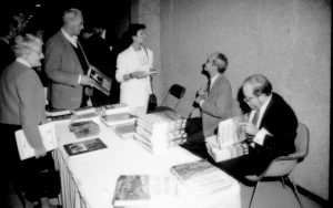 Attendees at book table talking to authors. 8th Annual Lincoln Colloquium; E Lincoln, Colloquium Attendees at book table talking to authors. 8th Annual Lincoln Colloquium; E Lincoln, Colloquium
