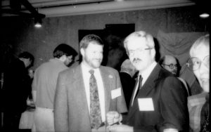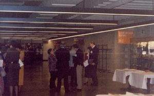Attendees talking to one another in hallway. 1992 Lincoln Colloquium Lincoln, Colloquium Attendees talking to one another in hallway. 1992 Lincoln Colloquium Lincoln, Colloquium