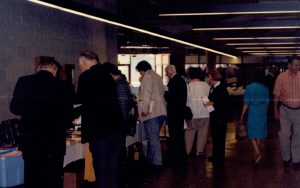 People at book tables in hallway. 1992 Lincoln Colloquium Lincoln, Colloquium People at book tables in hallway. 1992 Lincoln Colloquium Lincoln, Colloquium