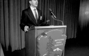 Man in dark suit at podium. 1992 Lincoln Colloquium; Outside #69 Lincoln, Colloquium Man in dark suit at podium. 1992 Lincoln Colloquium; Outside #69 Lincoln, Colloquium