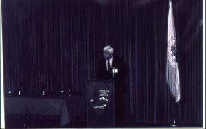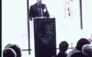 Man (with no tie) speaking at podium. 1992 Lincoln Colloquium; Outside #69 Lincoln, Colloquium Man (with no tie) speaking at podium. 1992 Lincoln Colloquium; Outside #69 Lincoln, Colloquium