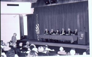 Man addressing speakers table. 1992 Lincoln Colloquium Lincoln, Colloquium Man addressing speakers table. 1992 Lincoln Colloquium Lincoln, Colloquium