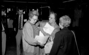Three ladies standing, conversing 1992 Lincoln Colloquium; Outside #72 Lincoln, Colloquium Three ladies standing, conversing 1992 Lincoln Colloquium; Outside #72 Lincoln, Colloquium