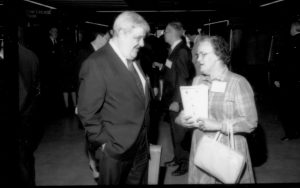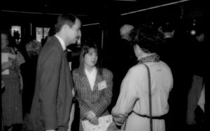 Lady, holding booklet, talking to a man 1992 Lincoln Colloquium; Outside #72 Lincoln, Colloquium Lady, holding booklet, talking to a man 1992 Lincoln Colloquium; Outside #72 Lincoln, Colloquium