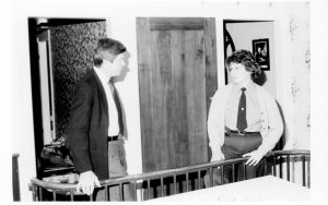 Man and woman standing, conversing 1992 Lincoln Colloquium Lincoln, Colloquium Man and woman standing, conversing 1992 Lincoln Colloquium Lincoln, Colloquium
