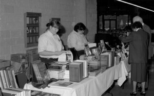 Two ladies behind book table. Colloquium, 1991 Lincoln, Colloquium Two ladies behind book table. Colloquium, 1991 Lincoln, Colloquium