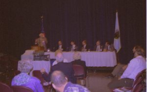 Speakers sitting at table on dias. Colloquium, 2001 Speakers sitting at table on dias. Colloquium, 2001