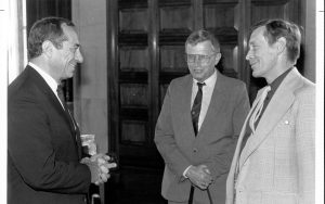 1990 Booklet-9 men seated on platform, another speaking-Lincoln on Democracy Lincoln, Colloquium 1990 Booklet-9 men seated on platform, another speaking-Lincoln on Democracy Lincoln, Colloquium