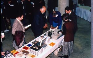 Attendees at book table. 1997 Colloq (color slides) Colloquium, 1997 Attendees at book table. 1997 Colloq (color slides) Colloquium, 1997