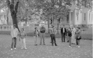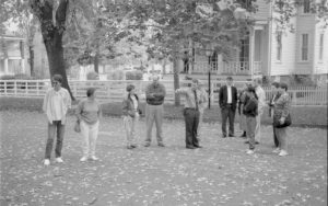 Visitors standing in street with Ranger. Lincoln Colloquium; UIS Roll#1, 1of4 Lincoln, Colloquium Visitors standing in street with Ranger. Lincoln Colloquium; UIS Roll#1, 1of4 Lincoln, Colloquium
