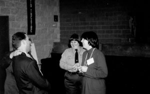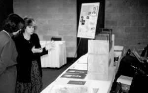 Two ladies talking at display table. Lincoln Colloquium; UIS Roll#1, 3of4 Lincoln, Colloquium Two ladies talking at display table. Lincoln Colloquium; UIS Roll#1, 3of4 Lincoln, Colloquium