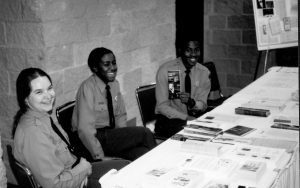 Park Rangers sitting behind table. Lincoln Colloquium; UIS Roll#1, 1of4 Lincoln, Colloquium Park Rangers sitting behind table. Lincoln Colloquium; UIS Roll#1, 1of4 Lincoln, Colloquium