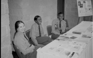 Staff sitting behind table. Lincoln Colloquium; UIS Roll#1, 4of4 Lincoln, Colloquium Staff sitting behind table. Lincoln Colloquium; UIS Roll#1, 4of4 Lincoln, Colloquium