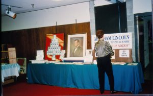 Display table with large Lincoln portrait 1997 Colloq (color slides) Colloquium, 1997 Display table with large Lincoln portrait 1997 Colloq (color slides) Colloquium, 1997