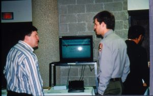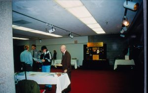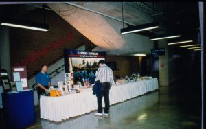 Man standing in front of exhibit table. 1997 Colloq (color slides) Colloquium, 1997 Man standing in front of exhibit table. 1997 Colloq (color slides) Colloquium, 1997