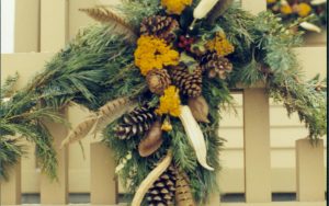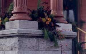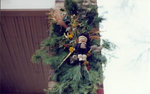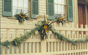 Lincoln Home NHS- Christmas in Lincoln Neighborhood Christmas decor on wall, possibly, porch. Detail. Christmas, neighborhood, decor, porch, wall, detail