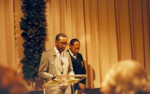 Lincoln Home NHS- Christmas in Lincoln Neighborhood Looking east from 8th Street toward Robinson house and lot. Individual in window. Christmas, neighborhood, Robinson, decoration