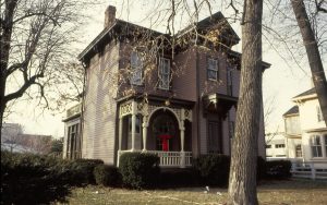 Lincoln Home NHS- Christmas in Lincoln Neighborhood Looking south west from 8th Street, Shutt house decorated for Christmas. Christmas, decorations, Shutt, snow, decor, garland, wreath