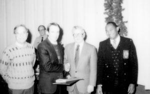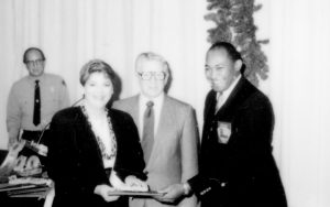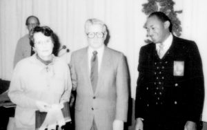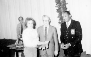 Lincoln Home NHS- Christmas in Lincoln Neighborhood Looking north, visitors and staff gathered for photo in Visitor Center theater 1. Christmas, ceremony, visitor, center, staff, vip