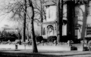 Lincoln Home NHS- Christmas in Lincoln Neighborhood Looking west from 8th street, Rosenwald house decorated for Christmas. Christmas, neighborhood, Lyon, Rosenwald, garland, wreath, porch, fence