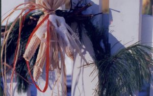 Lincoln Home NHS- Christmas in Lincoln Neighborhood Looking west from 8th Street, Dean house decorated for Christmas. Detail. Christmas, neighborhood, Dean, wreath, garland, fence, decor